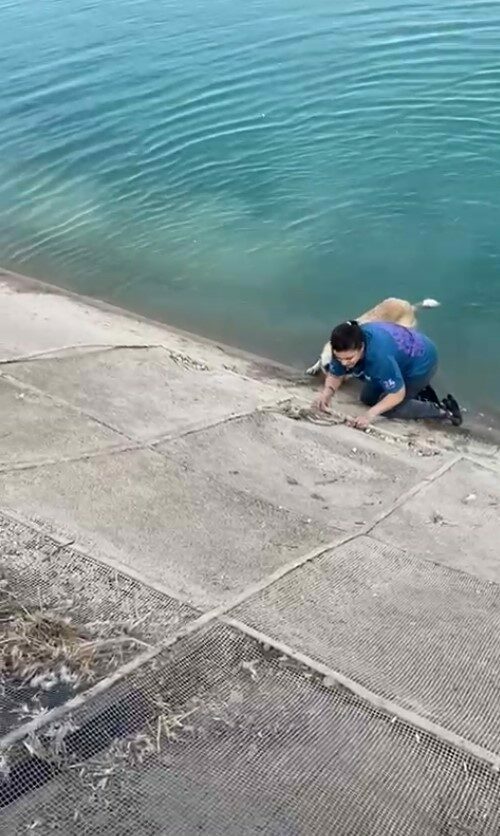 Köpeği kurtarmak için kanala inen Aysun Dilaver, hayvanı suyun içinde görünce dayanamayıp kanala indiğini ancak ıslak ve ağır olduğu için de kurtaramadığını eşinin yardımıyla köpeği dışarıya çıkardıklarını anlattı.