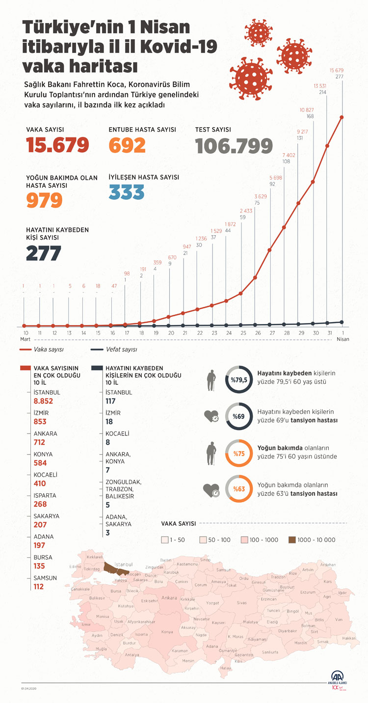 Virüsten kaynaklı en çok ölümün yaşandığı 10 il sıralamasında, İstanbul 117 kişiyle ilk sırada yer aldı. İzmir’de 18, Kocaeli’de 8, Konya ve Ankara 7’şer, Zonguldak, Balıkesir ve Trabzon’da 5’er, Adana ve Sakarya’da ise 3’er ölüm kayıtlara geçti.