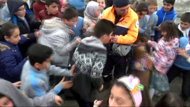 Depremde enkaz altında canlı aramada kullanılan ve özel olarak yetiştirilen kurtarma köpeği Belçika Malinois cinsi çaki de tatbikatta görev aldı. Ancak çok sayıda öğrencinin bir anda etrafını sararak okşamalarından rahatsız olan çaki bir kız öğrencinin üzerine saldırdı. Bakıcısı tarafından zaptedilen köpek öğrencileri korkuttu. Tatbikat alanındaki öğretmen ve AFAD görevlilerin uyarısı üzerine öğrenciler köpekten uzaklaştı.