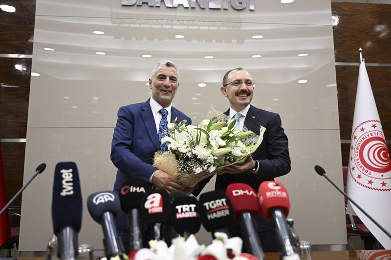 Ticaret Bakanlığı’ndaki devir teslim töreninde Ömer Bolat görevi Mehmet Muş’tan devraldı.
