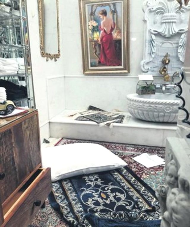 Oktar’ın yatak odasında ise bir çift kişilik yatak ve bir de tek kişilik yatak bulunurken, odanın üst katındaki jakuzili banyoda, seccade, abdest almak için musluk ve tablolar ise dikkat çekti.