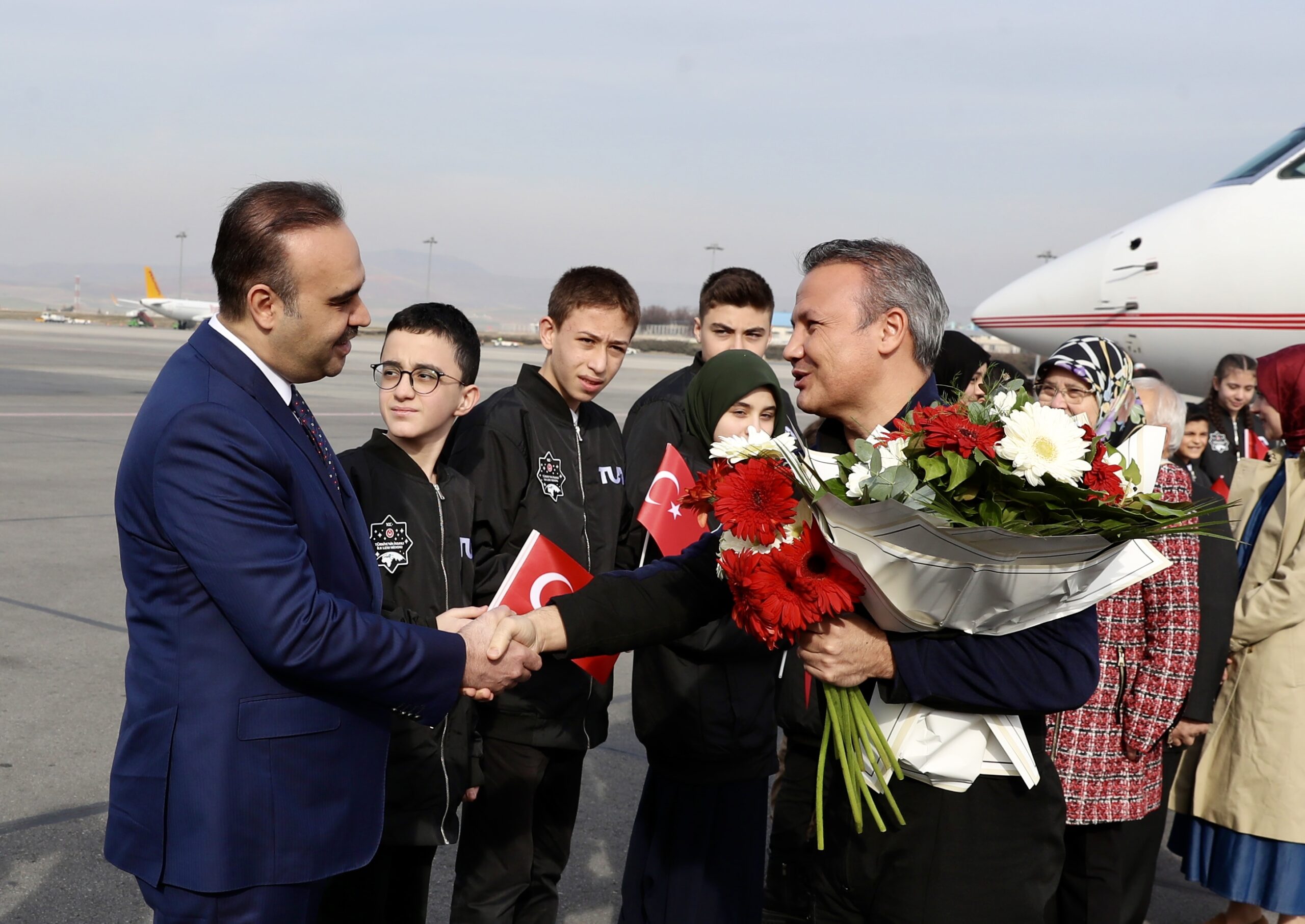 Gezeravcı, Uluslararası Uzay İstasyonu’na giderken götürdüğü ve Dünya’ya geri getirdiği 13 Türk bayrağını kendisine çiçek veren çocuklara verdi.