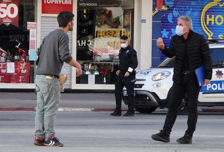 Polisin gözaltına almak istediği kişi kendisini yerden yere atarak çığlık atmaya devam etti. Adının Mustafa Hatipoğlu olduğu belirlenen kişi, kelepçelendi. Yüzünde maske olmayan Hatipoğlu’na maske takmak isteyen polis, başarılı olamadı. Yüzüne takılmak istenen maskeye “Abi o iyi bir şey değil. Lütfen yapmayın” diyen Hatipoğlu’na polis “Oğlum maske bu maske” diyerek ikna etmeye çalıştı. Tüm çabalara rağmen maskeyi takmayan Hatipoğlu, “İmdat polis yok mu? Abi bu bagaj arkası” diyerek, ekip aracına binmek istemedi. 4 polisin güçlükle arka koltuğa oturttuğu Hatipoğlu, tekrar araçtan çıkıp “İmdat, Allah rıza için yapmayın. Beni polis merkezine götürün” diye bağırmayı sürdürdü.