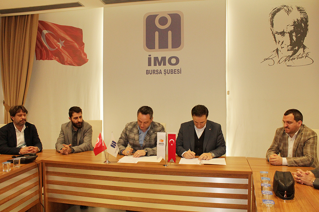 İMO Bursa Şube Yönetim Kurulu Başkanı Serdar Atilla Erdem ve İMSİAD Yönetim Kurulu Başkanı Şeref Demir bir araya gelerek protokolü imzaladılar.