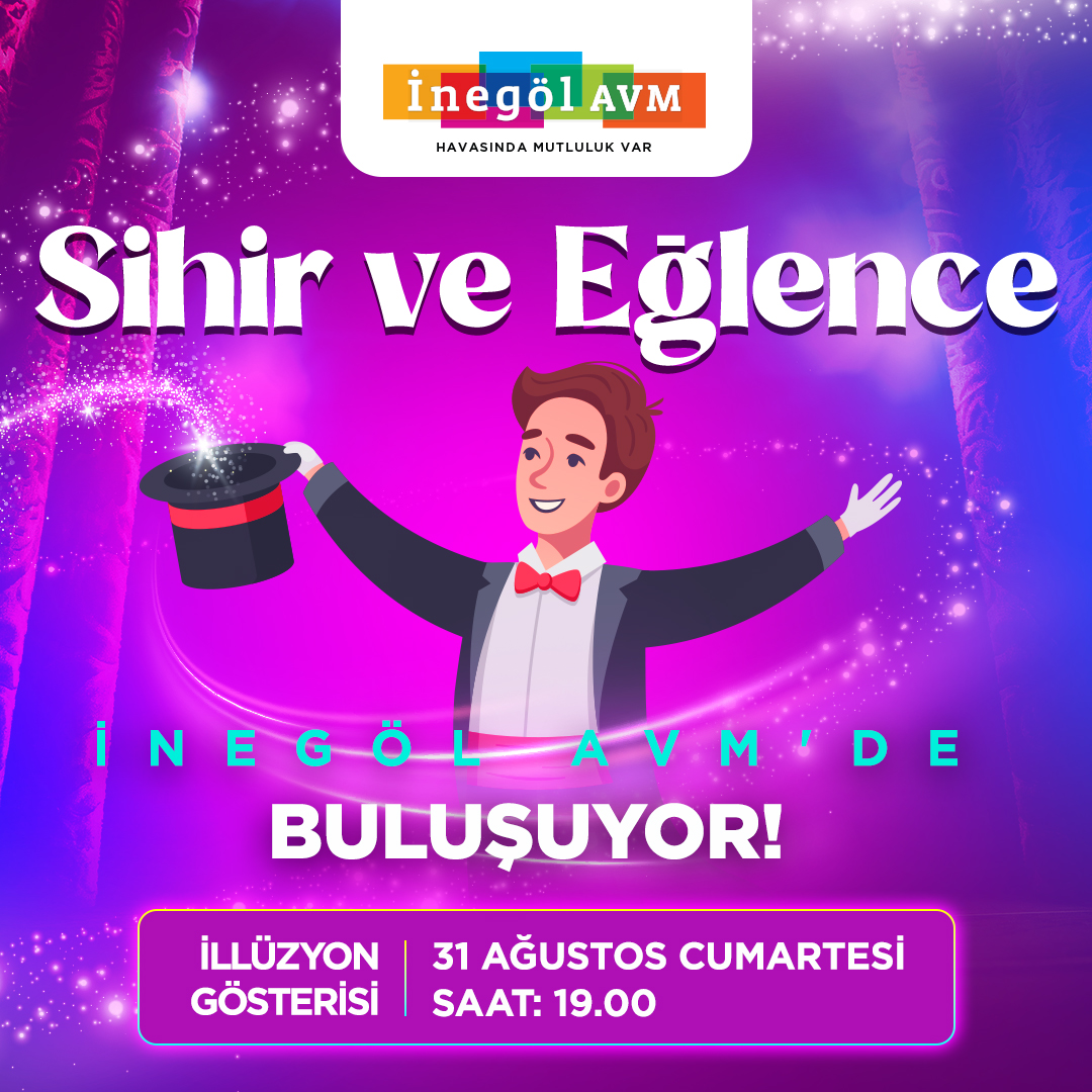 Saat 19.00’da başlayacak olan bu büyüleyici illüzyon gösterisi, her yaştan izleyiciyi şaşırtacak ve eğlendirecek. Profesyonel illüzyonistlerin sahne alacağı bu etkinlik, izleyicilere unutulmaz bir akşam yaşatacak. Herkesin merakla beklediği bu gösteri, İnegöl AVM’nin Ağustos ayını muhteşem bir şekilde sonlandıracak.