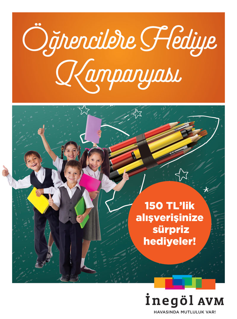 İnegöl AVM ziyaretçilerine özel hediye şenliği kapsamında 150 TL ve üzeri alışveriş yapanlara sürpriz hediyeler verilecek. Okula dönüşte çocukları mutlu etmeyi hedefleyen İnegöl AVM; hijyen seti, çocukların el becerisi ve zekasını geliştirmeye destek oyuncaklar, kırtasiye ürünleri ve eğlence kartlarından oluşan hediyelerle okul heyecanını renklendirecek.