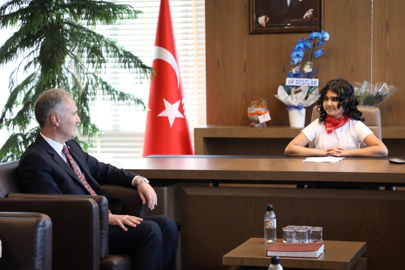 Bu sabah 09.30’da yapılan makam devrinde Belediye Başkanlığı koltuğuna oturan Ayşe Zehra Uslu, günün anlam ve önemine ilişkin bir konuşma da yaptı. Küçük Başkan Uslu, konuşmasına 31 Mart 2024 yerel seçimlerinde yeniden İnegöl Belediye Başkanlığına seçilen Başkan Taban’ı kutlayarak başladı.