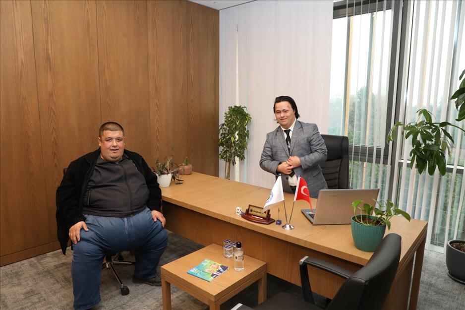 İki engelli personelin görevleri hakkında da bilgi veren Taban, “Can Ahmet bizim için çok kıymetli. Geldiği günden bu yana da çok katkısı oldu. Sosyal gücü yüksek bir arkadaşımız. Down sendromlu olduğu için biliyorsunuz down sendromu +1 kromozom demek. Can Ahmet’i de +1 Başkan olarak görevlendirdik. Eser de güvenlik amirimiz. İlk geldiğinde çok konuşkan bir insan değildi. Zamanla açıldı ve artık daha iyi. Bizim de onlardan öğrendiğimiz çok şeyler var. Onlar da kendilerini sürekli geliştiriyorlar. Ailelerinin de bu noktada çok mutlu olduğunu görüyoruz” diye konuştu.