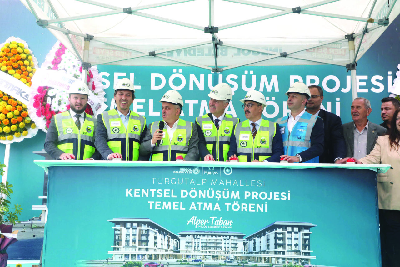 İlçenin ilk yerinde kentsel dönüşüm projesi olma özelliği taşıyan Turgutalp Mahallesi Kentsel Dönüşüm Projesinin birinci etabının temeli, geniş katılımlı ve coşkulu bir törenle atıldı. İnegöl Belediyesi’nin garantörlüğünde, Pera Mimari tarafından hayata geçirilen proje; 153 dönümlük dev bir alanda İnegöl’ün en modern, en çevreci ve en güvenli yaşam alanlarından birini oluşturacak. Proje tamamlandığında, sadece yeni binalar değil, modern sosyal donatıları, çevre dostu uygulamaları, akıllı şehir teknolojileri ve yaşam kalitesini artıran planlaması ile İnegöl’ün cazibe merkezi haline gelecek yeni bir yaşam alanı doğacak.