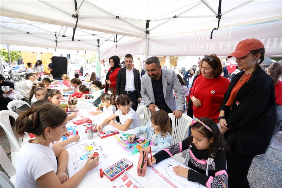 Öte yandan, yine aynı alanda İnegöl Belediyesi Çocuk Resim Atölyesi kuruldu. Burada da geleceğin sanatçıları cumhuriyet temalı resimlerle 100. Yıl coşkusuna dahil oldular. Miniklerin eserleri hem aileler hem diğer vatandaşlar tarafından beğeni topladı.