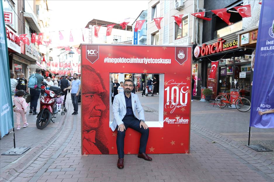 Cumhuriyetin kuruluşunun 100’üncü yılı, İnegöl’de düzenlenen etkinliklerle büyük bir coşkuyla kutlanıyor. Resmi törenlerin yanı sıra İnegöl Belediyesi tarafından bugün çarşı bölgesinde Uzun Sokak girişinde oluşturulan özel platformla, vatandaşların Cumhuriyetin 100. Yılı coşkusu ölümsüzleştirildi. Aynı zamanda çocuk resim atölyesi etkinliği ile minikler cumhuriyeti resmetti.