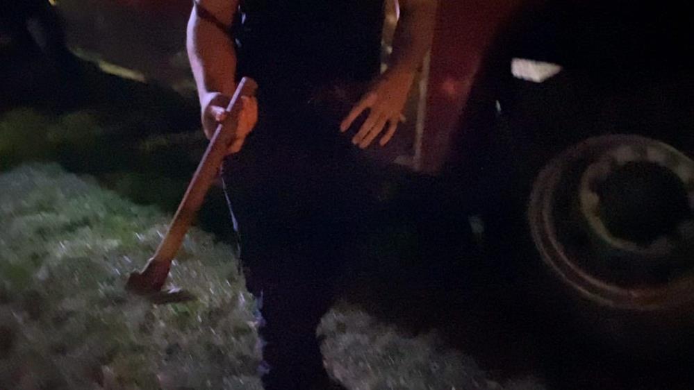 Çocuklar parkta oyun oynadıkları sırada top ağacın dalları üzerinde kaldı. Çocuklar ve aileleri topu bir türlü indiremedi. Yoldan geçen bir vatandaş, çocuklara yardım etmek istedi. Şahıs, aracındaki keseri ağaca fırlatarak topu indirmeye çalıştı. Ancak keser ağacın gövdesine saplandı.