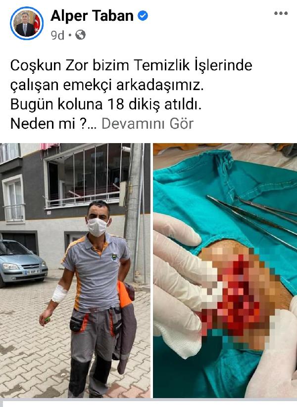Ayrıştırılmadan bilinçsizce atılan çöpler nedeniyle kolu kesilen işçinin fotoğrafını paylaşan İnegöl Belediye Başkanı Alper Taban, “Coşkun Zor bizim temizlik işlerinde çalışan emekçi arkadaşımız. Bugün koluna 18 dikiş atıldı. Neden mi? Çöp poşetinin içine atılan kırık cam yüzünden” ifadeleriyle duruma tepki gösterdi.