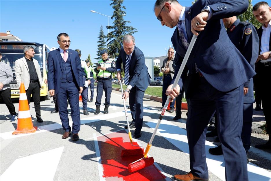 Kaymakam Eren Arslan ise “Bugün burada Bakanlığımızın trafikte her yıl daha iyiye hedefiyle ortaya koydukları vizyon çerçevesinde, yayalara öncelik hakkıyla ilgili bir farkındalık çalışması yapıyoruz. Gençlerimiz ve öğrencilerimiz de burada bizimle birlikte. Şehir hayatı, kuralların bütüncül olarak uygulanmasıyla rahat ve yaşanılır hale geliyor. Sonuçta bu kurallar öncelikle insanlarımızın can ve mal güvenliğini sağlamak için konulmuş kuralar. Yaya çizgilerinde öncelik yayaların olduğu bilincinin topluma yerleşmesi gerekiyor. Bu konuda duyarlılık gösteren, kurallara riayet eden vatandaşlarımız olduğu gibi maalesef zaman zaman bunları ihlal eden vatandaşlarımız da oluyor. Nihayetinde de canımızı yakan, bizi üzen kazalara ve kayıplara sebebiyet veriyor. Bunların önüne geçmek durumundayız. Bunun için de ilgili birimlerimiz denetimlerini yapıyorlar. Ama denetimden önce herkesin kendi denetimlerini yapması, kendi bilinciyle hareket etmesi çok daha kıymetli. O yüzden bugün gençlerimizle birlikteyiz, onlarla bu farkındalığı ortaya koyuyoruz. Başta bugünkü konumuz olan yaya geçitlerinde yayalara öncelik hakkı tanınması olmak üzere; kask kullanımı, emniyet kemeri kullanımı, hız kurallarına riayet edilmesi gibi trafikte ortak hareket etmemiz gerektiği bilinciyle, trafikte her an bir riskin var olduğu bilinciyle kurallara uymalıyız” diye konuştu.