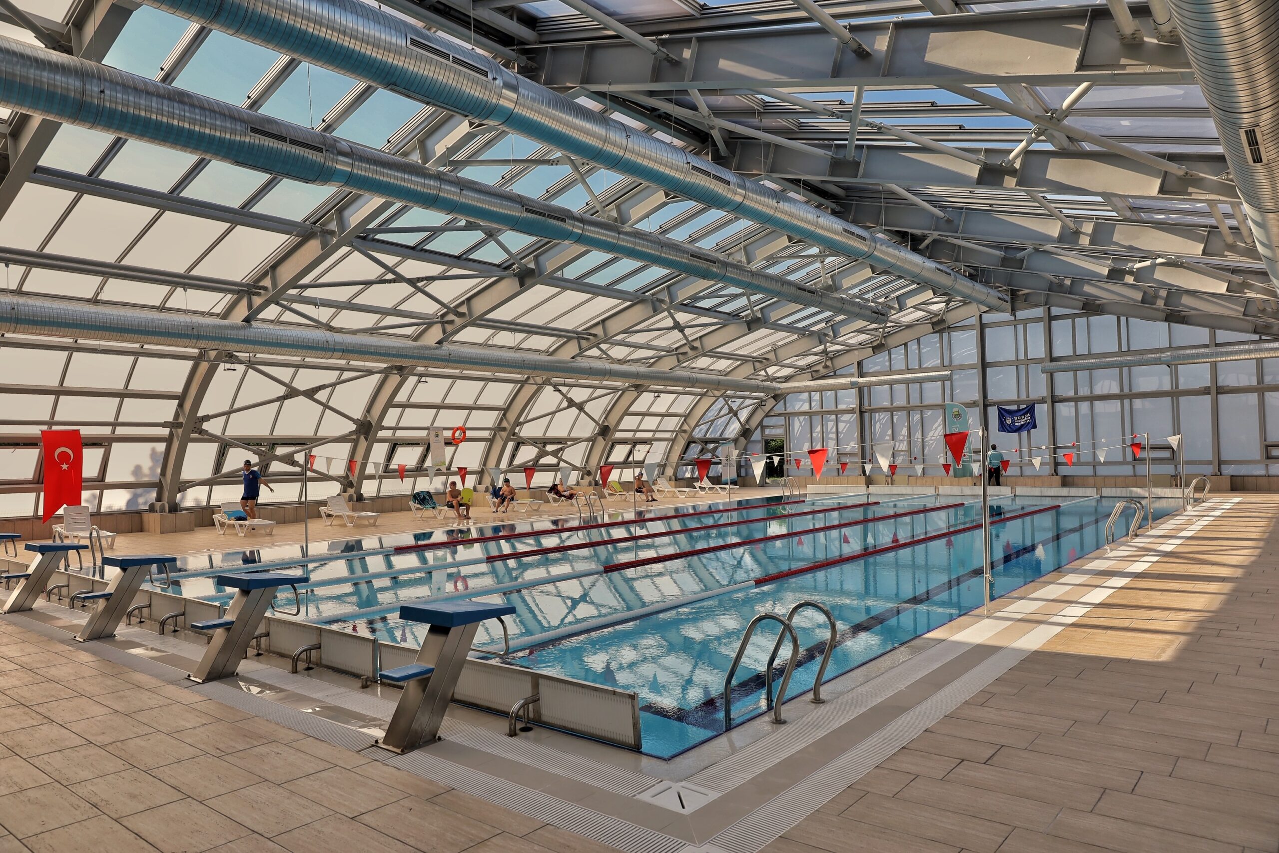 Spor kendi Bursa yeni bir tesise daha kavuştu… Bursa Büyükşehir Belediyesi tarafından İnegöl İlçesi’ne yaptırılan Mahmudiye Yarı Olimpik Yüzme Havuzu, törenle hizmete açıldı. Toplam 1450 metrekare taban alanına sahip olan ve bünyesinde çok amaçlı salon, yönetim odası, soyunma odaları, duş ve tuvaletler, antrenör odası ve mutfak bulunan yüzme havuzunun çatısı, açılır-kapanır otomatik hareketli mekanik cam sistem olarak tasarlandı.
