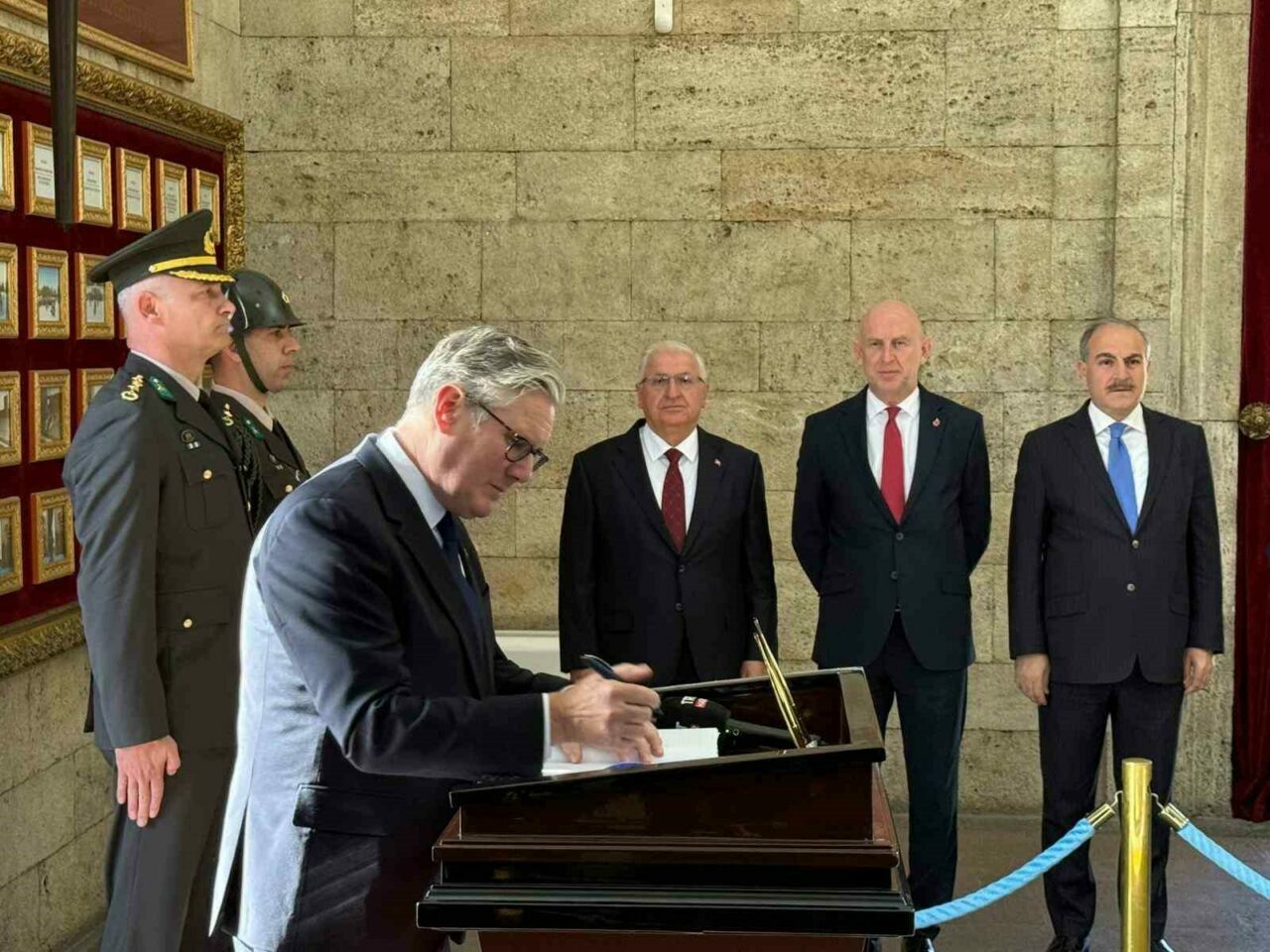İngiltere Başbakanı Keir Starmer Türkiye’de gerçekleştirdiği resmi temaslar öncesinde, Anıtkabir’i ziyaret etti. Resmi ziyaret kapsamında Ankara’ya gelen İngiltere Başbakanı Starmer, Milli Savunma Bakanı Yaşar Güler, İngiltere Savunma Bakanı John Healey, Türk Hava Kuvvetleri Komutanı Orgeneral Ziya Cemal Kadıoğlu, İngiltere’nin Ankara Büyükelçisi Jill Morris ve beraberindeki heyet ile Anıtkabir’e Aslanlı Yoldan giriş yaptı. Atatürk’ün mozolesine çelenk bırakmasının ardından saygı duruşunda bulunan heyet Anıtkabir önünde fotoğraf verdi.