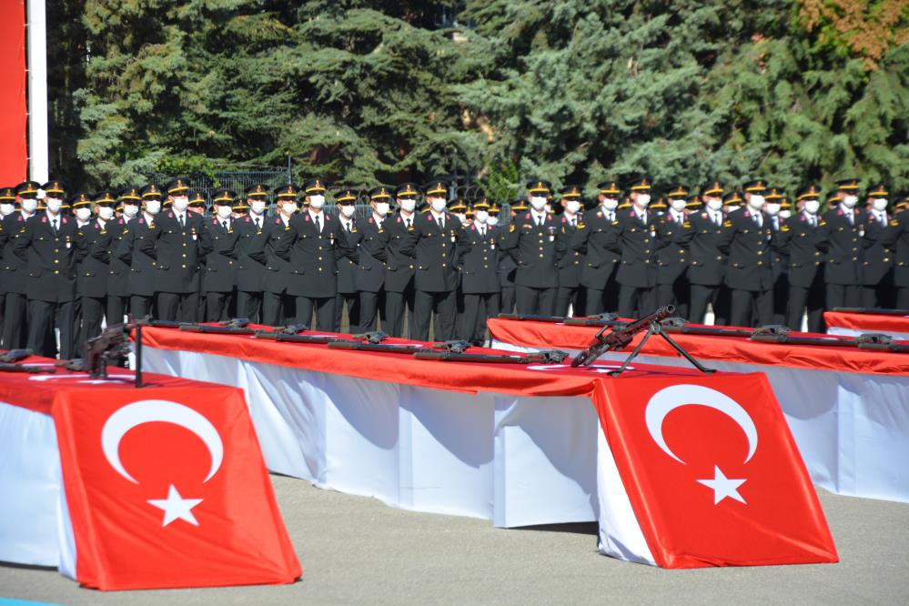 Bursa Işıklar Jandarma Astsubay Meslek Yüksek Okulu Komutanlığı’nda, korona virüs tedbirleri kapsamında astsubayların aileleri törene katılmazken, eğitimini başarıyla tamamlayarak mezun 400 astsubay adayı yemin etti.