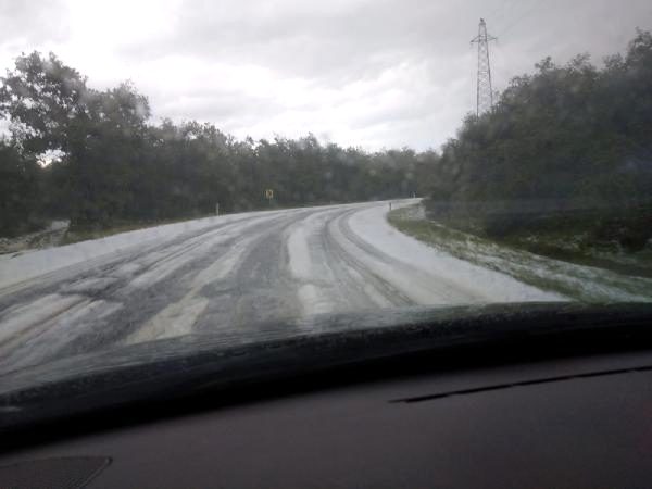 Etkili olan dolu yolları beyaza bürürken sürücüler zor anlar yaşadı.