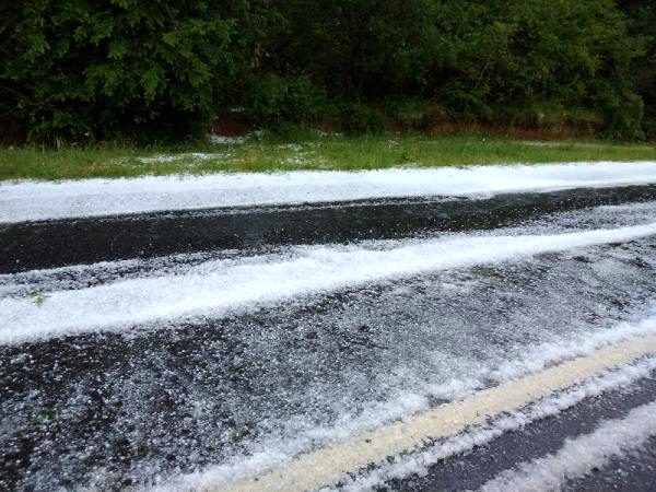 Şiddetli dolu yağışı nedeniyle cadde ve sokaklar kısa sürede beyaza büründü.