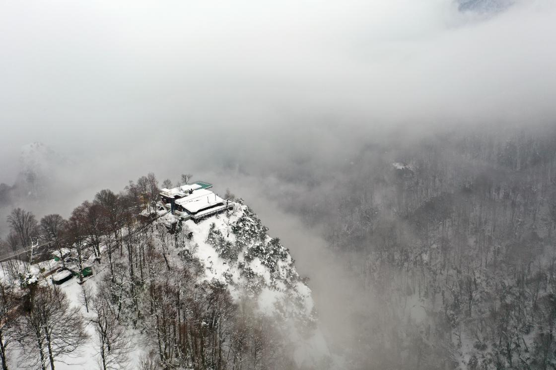 Ağaçların arasında oluşturulan pistlerde zirveden aşağı doğru kayan tatilciler, eşsiz manzaralarla karşılaşıyor.