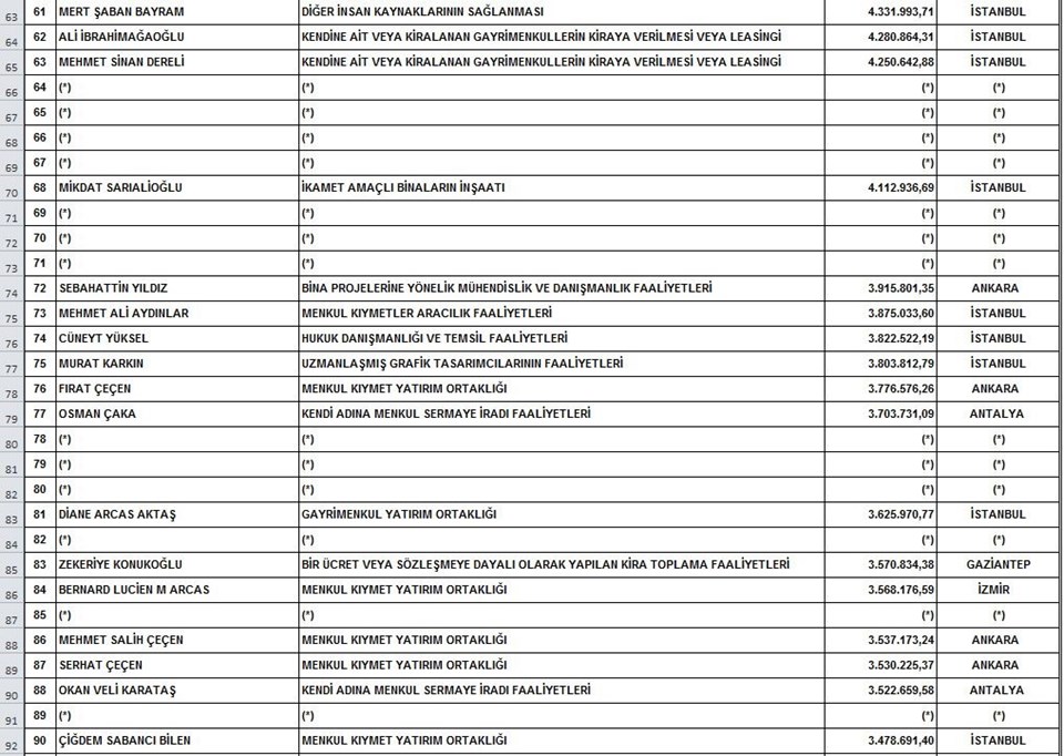 İşte Türkiye’nin en çok gelir vergisi ödeyen 100 ismi (*):