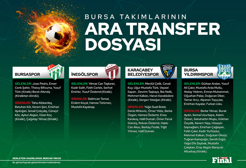İşte Bursaspor, İnegölspor, Karacabey Belediyespor ve Bursa Yıldırımspor’da gerçekleşen transferler…