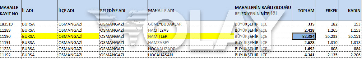 Verilere göre, Bursa’nın en kalabalık ilçesi olan Osmangazi’ye bağlı Hamitler Mahallesi, kentin en kalabalık mahallesi oldu.