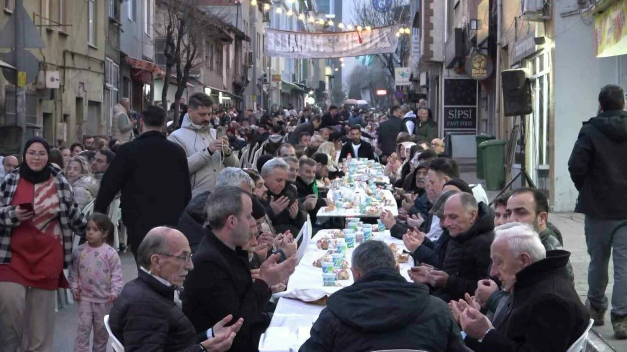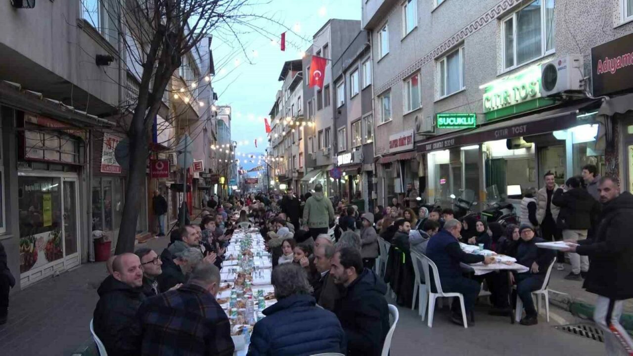 Mahalle gençlerinin bu yıl 3’ncüsünü organize ettiği programda birlik ve beraberlik görüntüleri oluşurken, iftar sofraları yüzlerce metre boyunca caddeyi doldurdu. Şehir dışından da birçok kişinin katıldığı programda mahalle sakinleri Ramazan’ın bereketini aynı sofrada paylaştı.