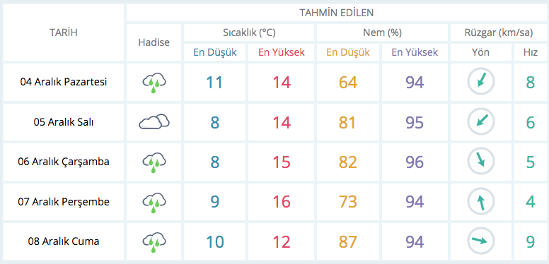 BURSA 5 GÜNLÜK HAVA DURUMU