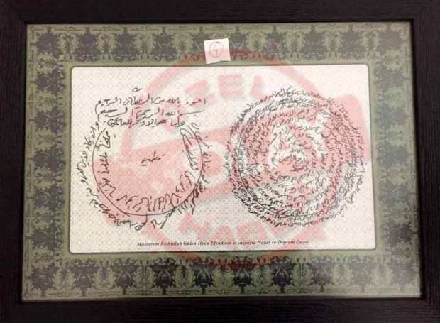 Başka bir operasyonda ise “Himmet” adı altında FETÖ’ye büyük mali yardımlar sağlayan bir iş adamının ev aramasında ise büyük bir panoda Fettullah Gülen’in el yazısı ile Nazar ve Deprem duası ele geçirildi. FETÖ’ daha öncede örgüt içerisinde yararlılık ve tam bağlılık gösteren kişilere Fetullah Gülen tarafından okunmuş 1 dolar vererek ödüllendirdiği ortaya çıkmıştı.