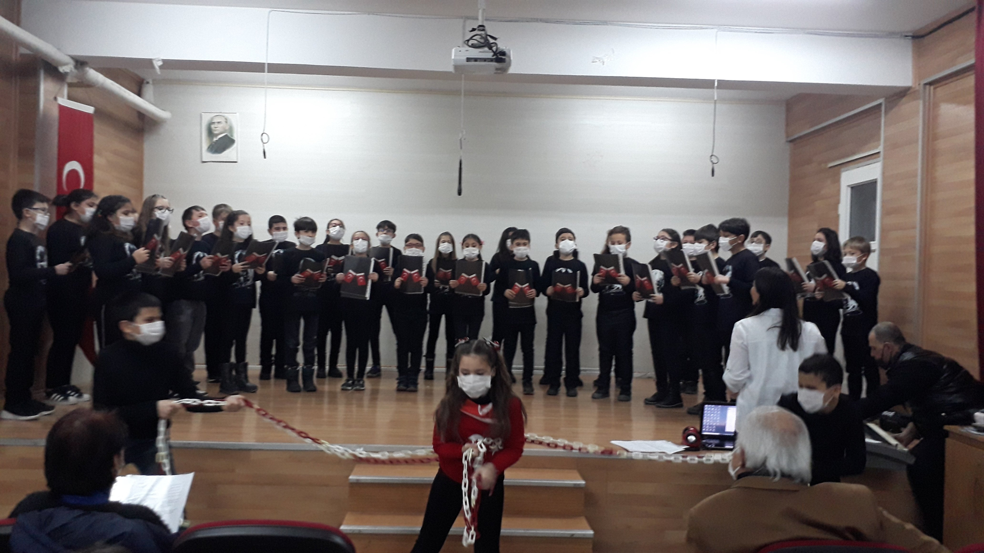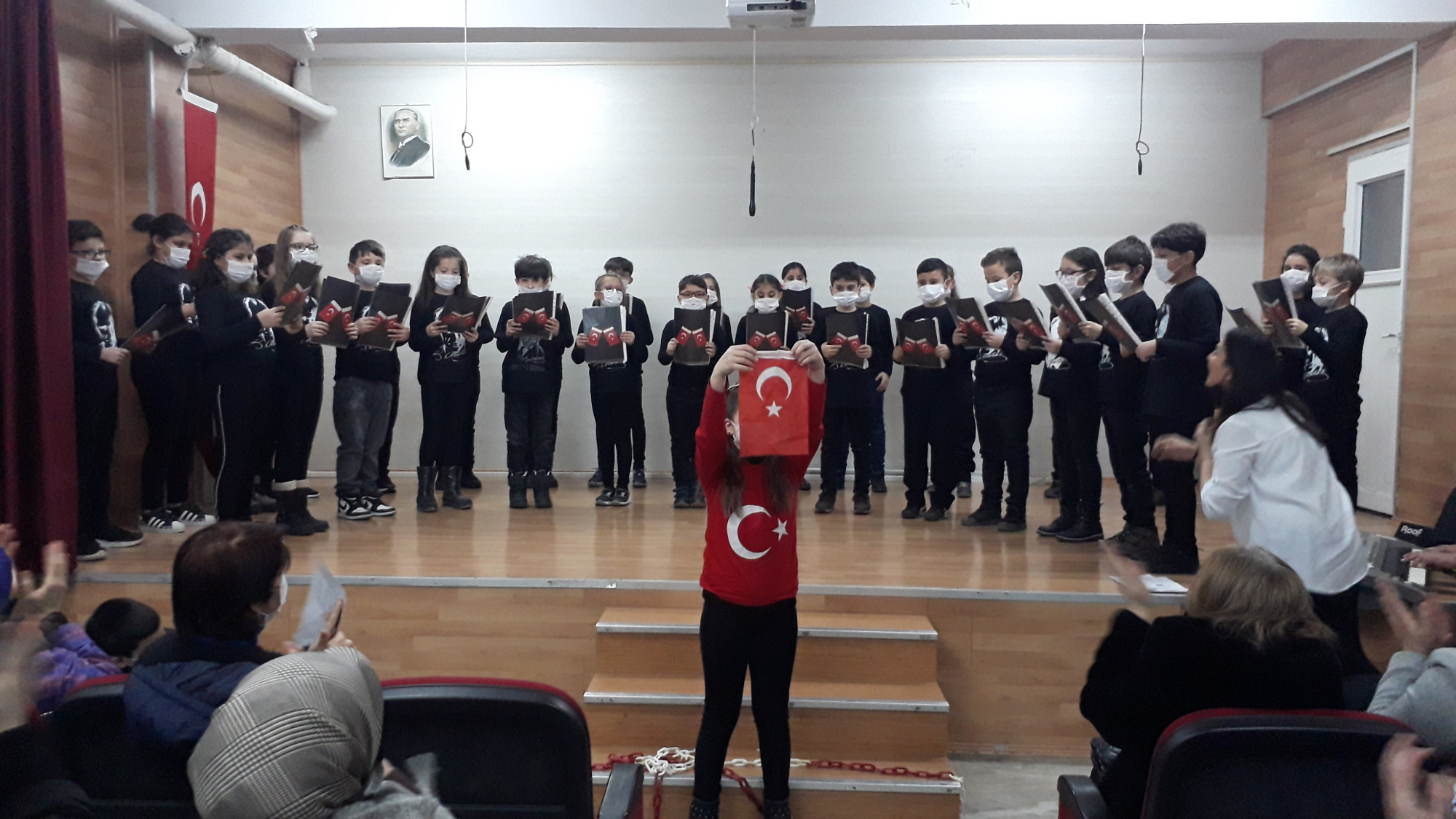 İstiklal Marşı’nın kabul edilişinin 101. yılı Yıldırım Turgay Ciner İlkokulu öğrencileri ve öğretmenleri 4/H sınıfı Hatice Eskiyurt ve Canan Çakılkaya tarafından hazırlanan İstiklal Marşı oratoryosu gösterisi yapıldı.