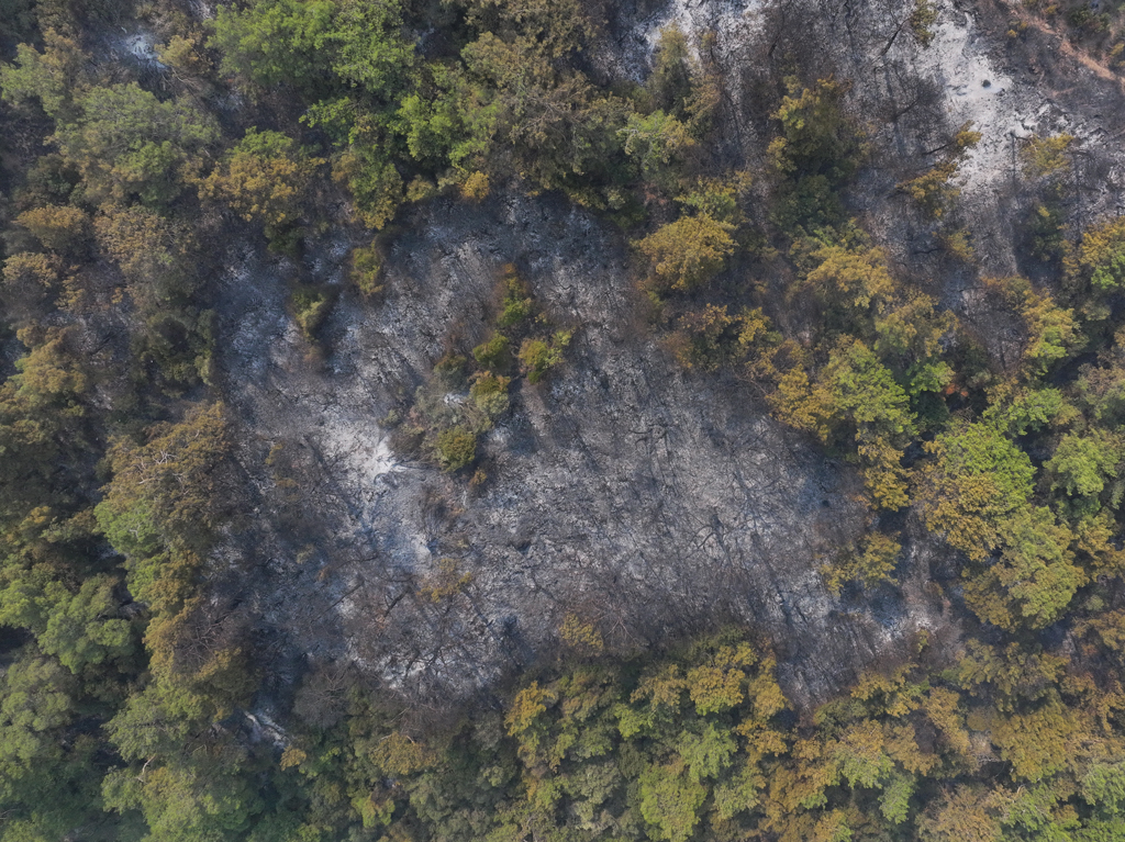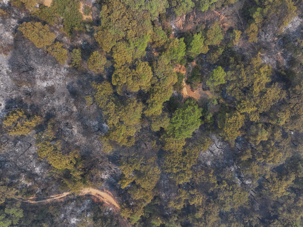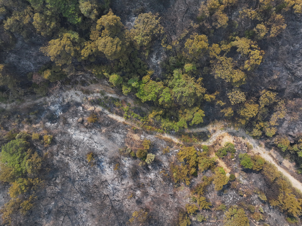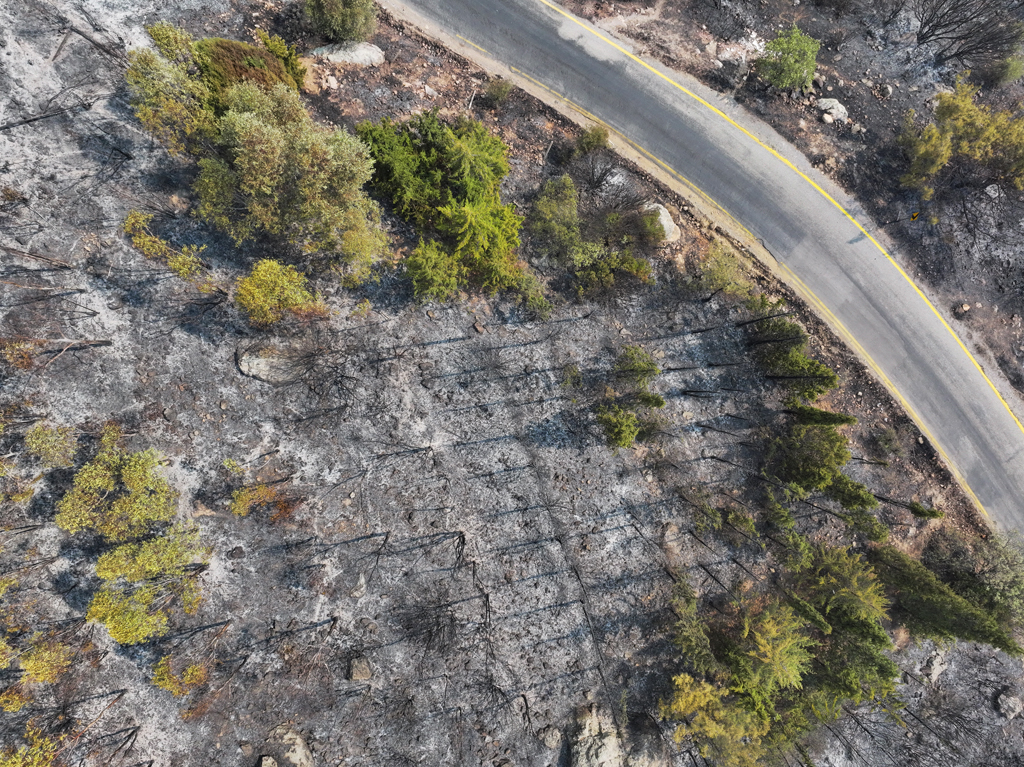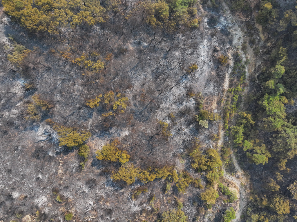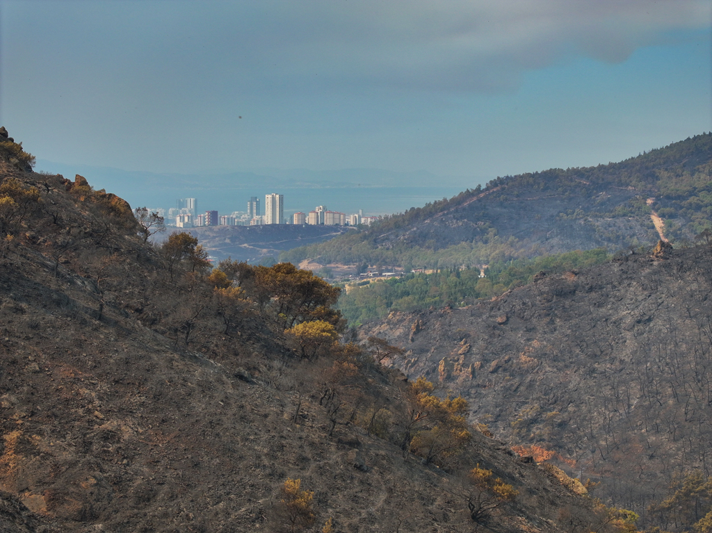 Alev daha önce yeşil olan ormanlık bölgeyi siyaha bürüdü. Bölgede yol kenarlarına atılan cam şişe gibi yangına neden olabilen atıkların yanı sıra poşet, kağıt gibi yanıcı atıklar da dikkati çekti.