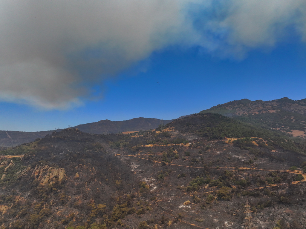 Yamanlar Karatepe mevkisinde önceki gün çıkan yangına müdahale çalışmaları sürüyor.