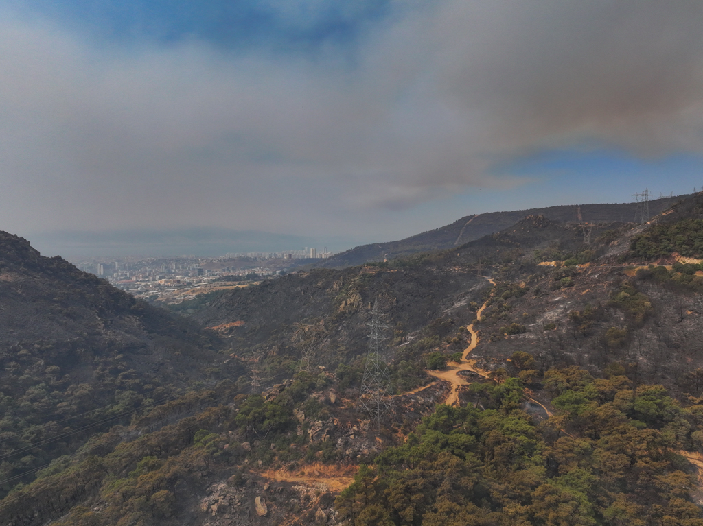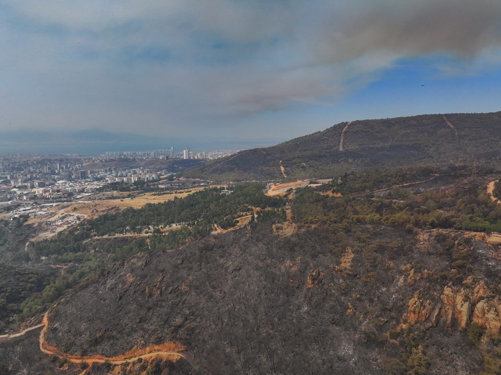 Karşıyaka’da başlayan ve Bayraklı ile Çiğli ilçesindeki ormanlık alanlara da yayılan yangında, kentin birçok noktası duman altında kalmıştı.