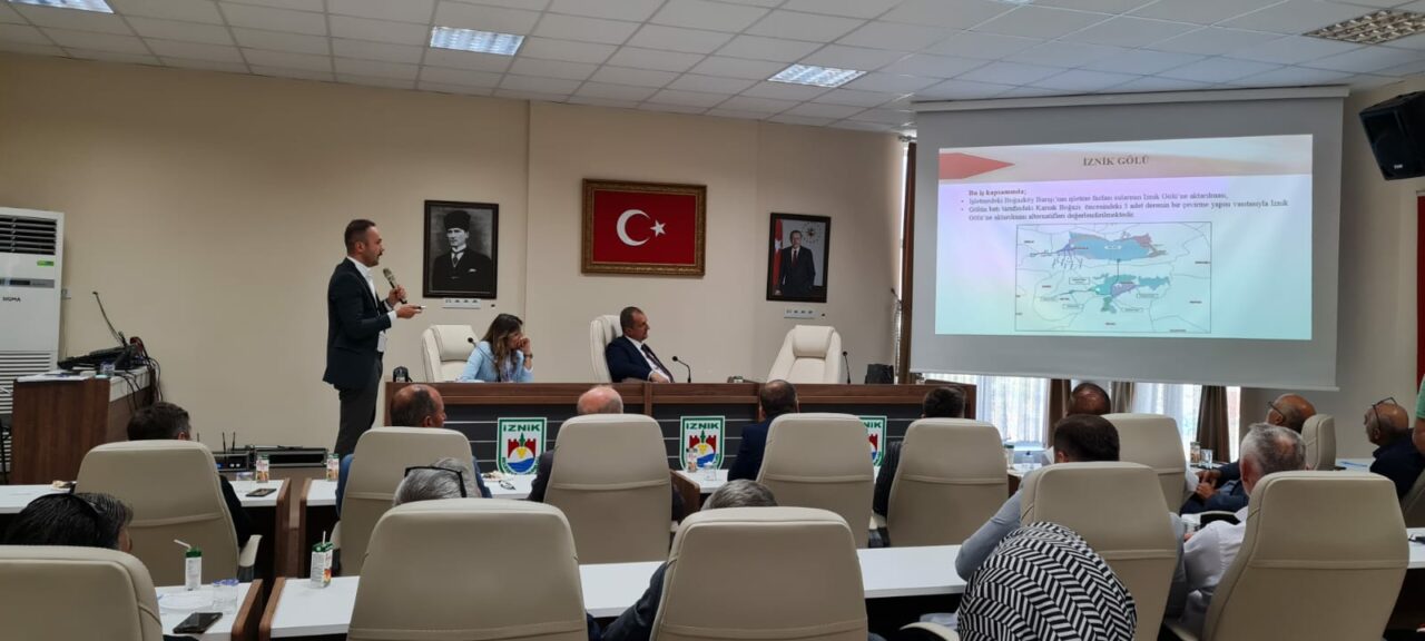 İznik Gölü Koruma Birliği toplantısı, İznik Belediye Başkanı Kağan Mehmet Usta’nın başkanlığında her iki ilçenin belediye meclis üyeleri ve Devlet Su İşleri (DSİ) yetkililerinin katılımıyla gerçekleştirildi.