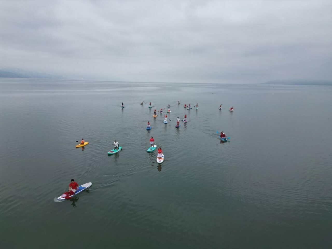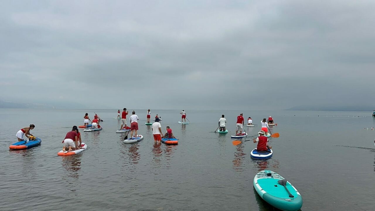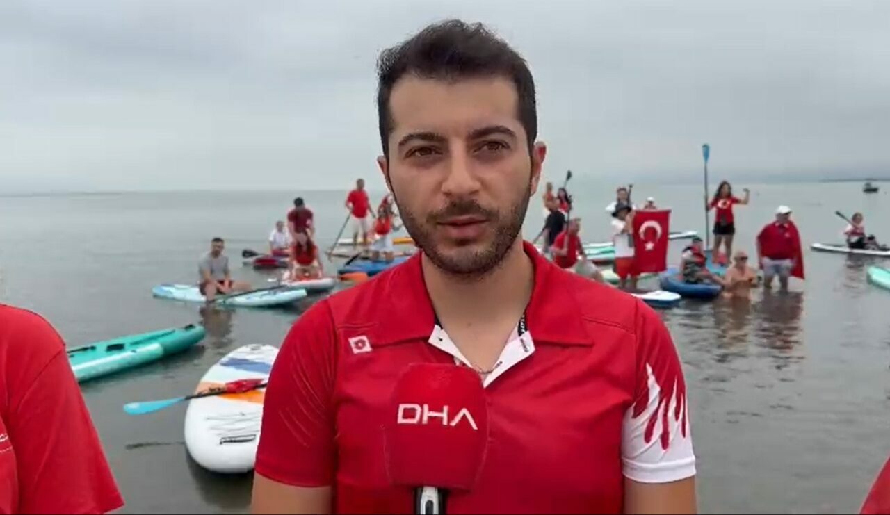 30 Ağustos Zafer Bayramı’nın 103’üncü yıl dönümü kutlamaları kapsamında İznik Gölü’nde bir araya gelen yaklaşık 20 kişilik Sup Board ekibi, göl üzerinde kırmızı-beyaz kıyafetlerle marşlar eşliğinde süzülerek renkli görüntüler oluşturdu. Dev Türk bayrağı açan grubu çevredekiler de ilgiyle izledi.