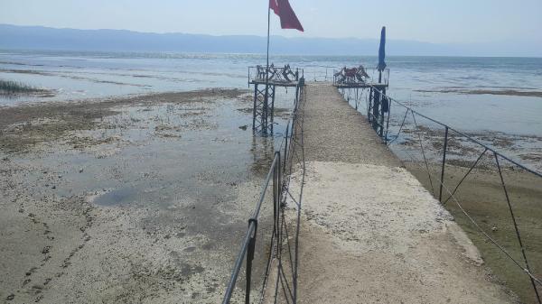 Marmara Bölgesi’nin en büyük, Türkiye’nin ise beşinci büyük doğal gölü olan İznik Gölü’nde, son zamanlarda kuraklık ve tarımsal alanlarda kullanılan su nedeniyle çekilme meydana geldi. İznik ilçesine bağlı Çakırca Mahallesi’nde bulunan iskeledeki son görüntü, suların çekildiğini gösterirken bölgedeki vatandaşlar ve yetkililer ise bu durumdan endişe ediyor.
