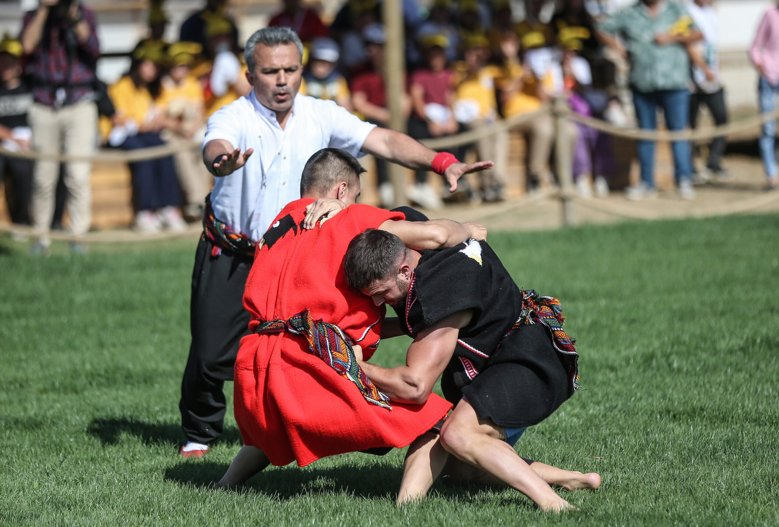 Atlı okçuluk yarışları, ‘Macar parkuru’ ve ‘tabla bendi’ branşlarında yapıldı. Geleneksel atlı okçuluk yarışlarına katılan 30 ülkeden 74 sporcunun mücadeleleri izleyenlerden ilgi gördü. Kadın erkek ayrımı olmayan karma yarışlar, farklı branşlarıyla bugün devam edecek. Türklerin en eski sporlarından olan aşırtmalı aba güreşinde mücadele edenler, koyun yününden ve keçi kılından el tezgahlarında dokunan, kolsuz, boyu güreşçinin dizlerine kadar gelen ve ‘aba’ adı verilen bir kıyafetle güreşiyor.