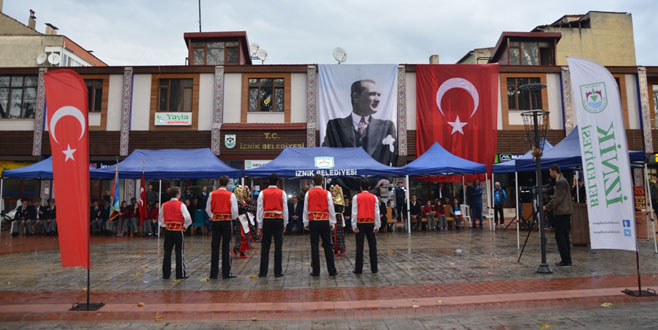 Tören İznik Kaymakam V. Yenişehir Kaymakamı Suat Seyitoğlu ve Belediye Başkanı Osman Sargın’ın Atatürk Anıtı’na çelenk koymasının ardından saygı duruşu ve İstiklal Marşı ile başladı.