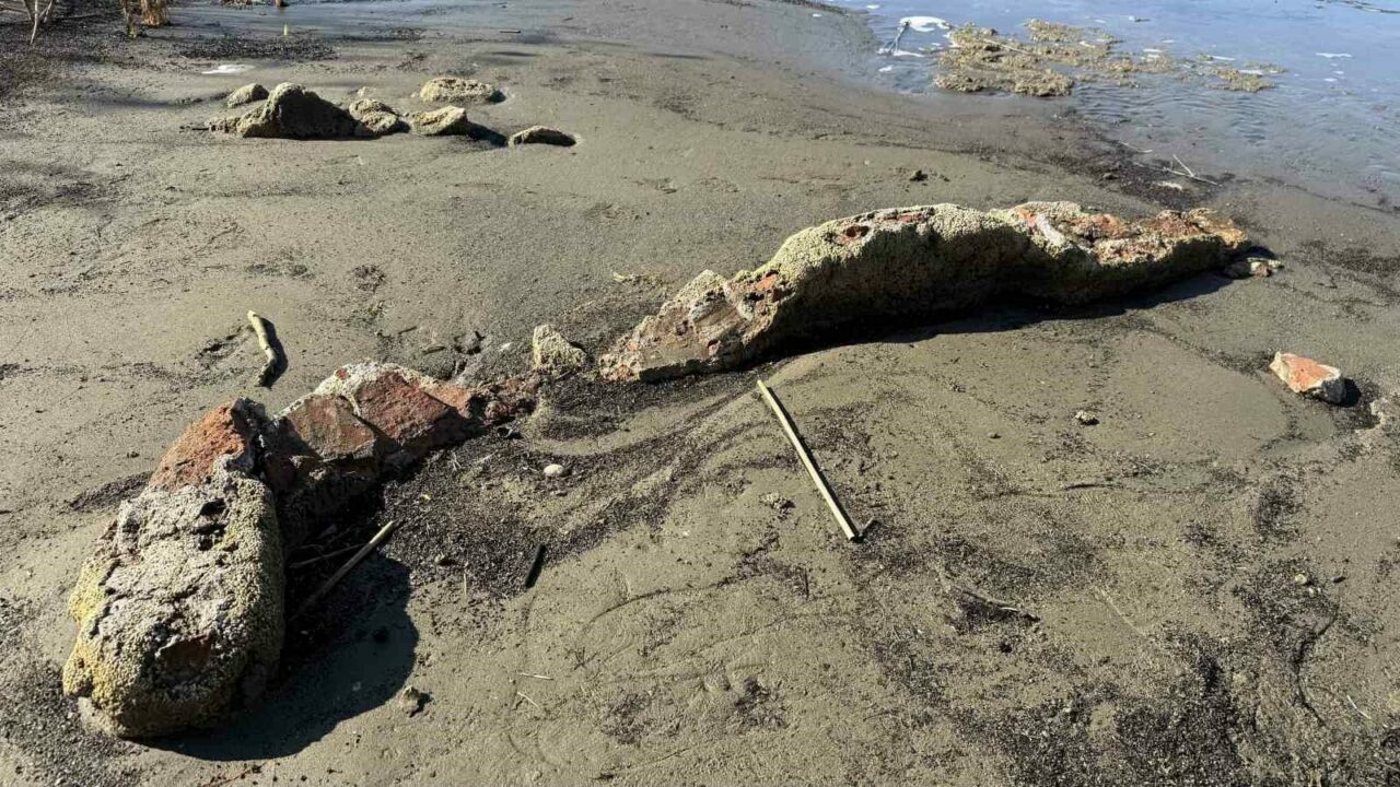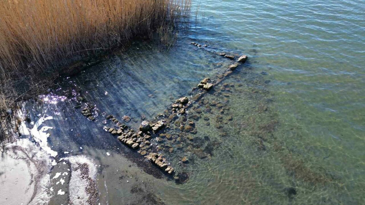 Göl sularının çekilmesiyle tamamen görünür hâle gelen kalıntıların, İznik sahil bandında kumsalın hemen yanında yer aldığı görülürken, yapıyı fark eden ekip heyecan yaşadı.