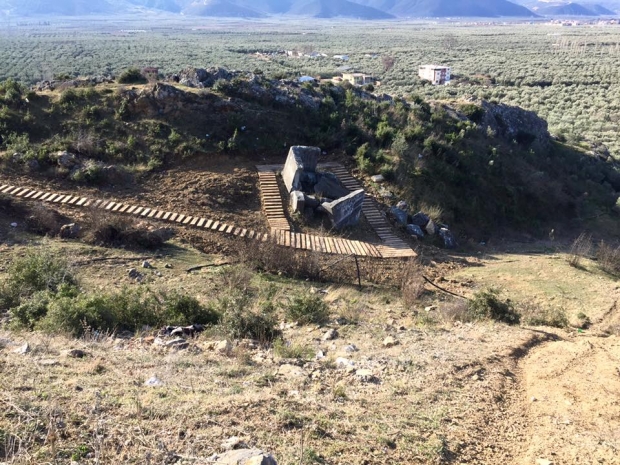Tepenin aşağısında bulunan lahide gidemeyen vatandaşların eseri izleyebilmesi için özel platform çalışmasına başlandı.