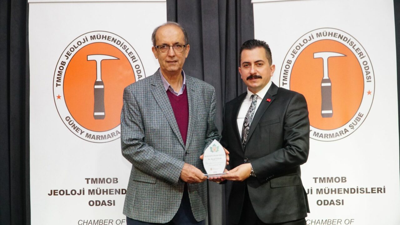Program kapsamında mesleğe uzun yıllar emek veren jeoloji mühendislerine plaket ve ödüller takdim edildi. Meslekte 62. yılını geride bırakan Prof. Dr. Yusuf Tatar, “Jeoloji Çınarı” ödülüne layık görüldü. Tatar’ın rahatsızlığı sebebiyle ödülü, TMMOB Jeoloji Mühendisleri Odası Güney Marmara Şube Başkanı Mehmet Yıldız’ın elinden Prof. Dr. Hükmü Orhan aldı. Meslekte 50’nci, 40’ncı, 30’uncu ve 25’inci yılını dolduranlara da plaketleri takdim edildi.
