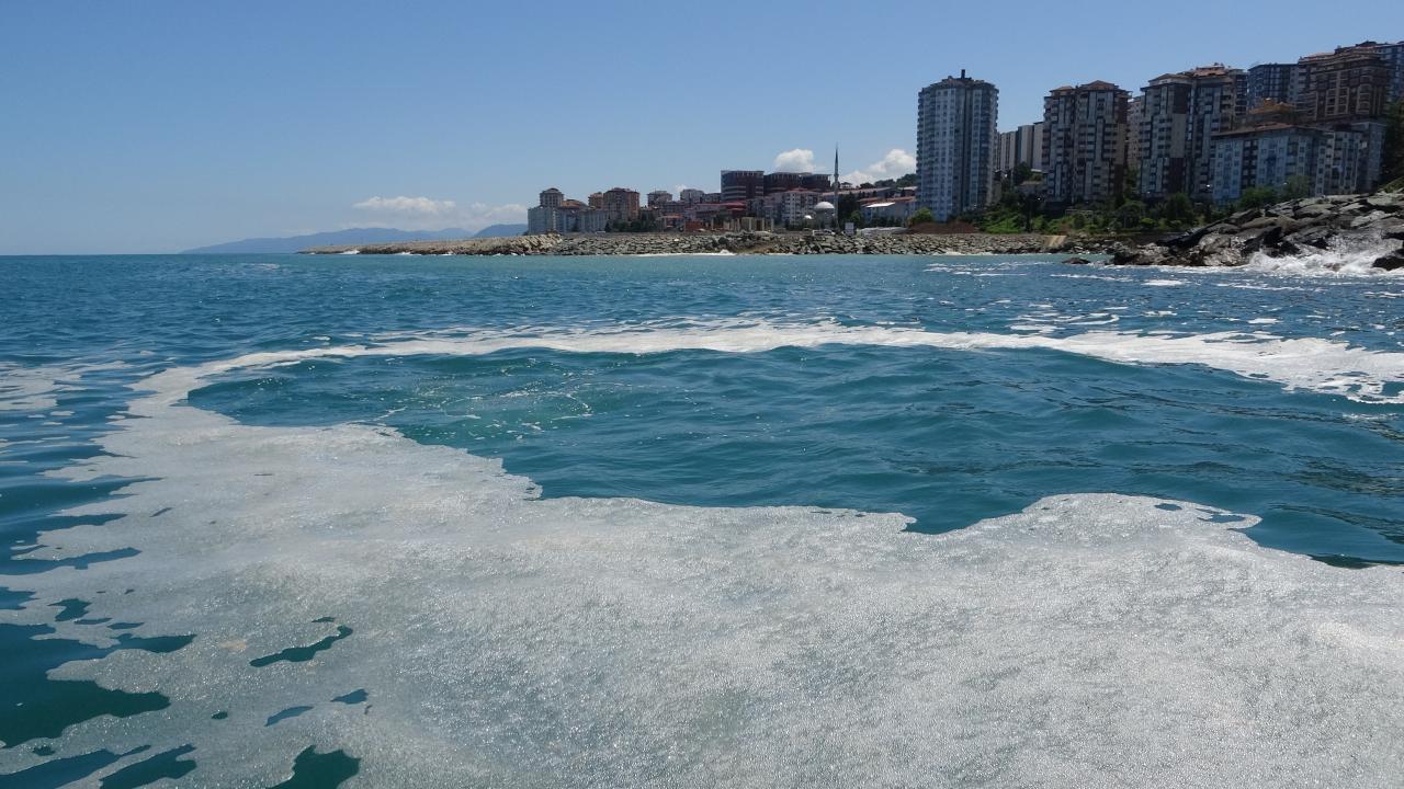 Rize’de sabah saatlerinde vatandaşın denizin üzerinde gördüğü yoğun kabarcıklar paniğe neden oldu.