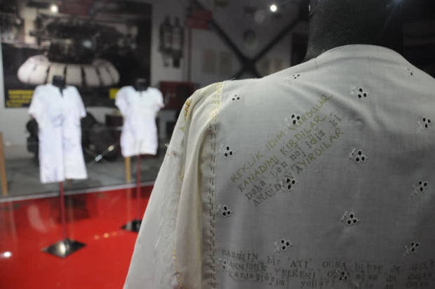 Türk geleneğinde gömleğin bir koruyucu simge olduğunu aktaran Sürür, sergideki gömleklerin de kadınları sembolize ettiğini bildirdi.