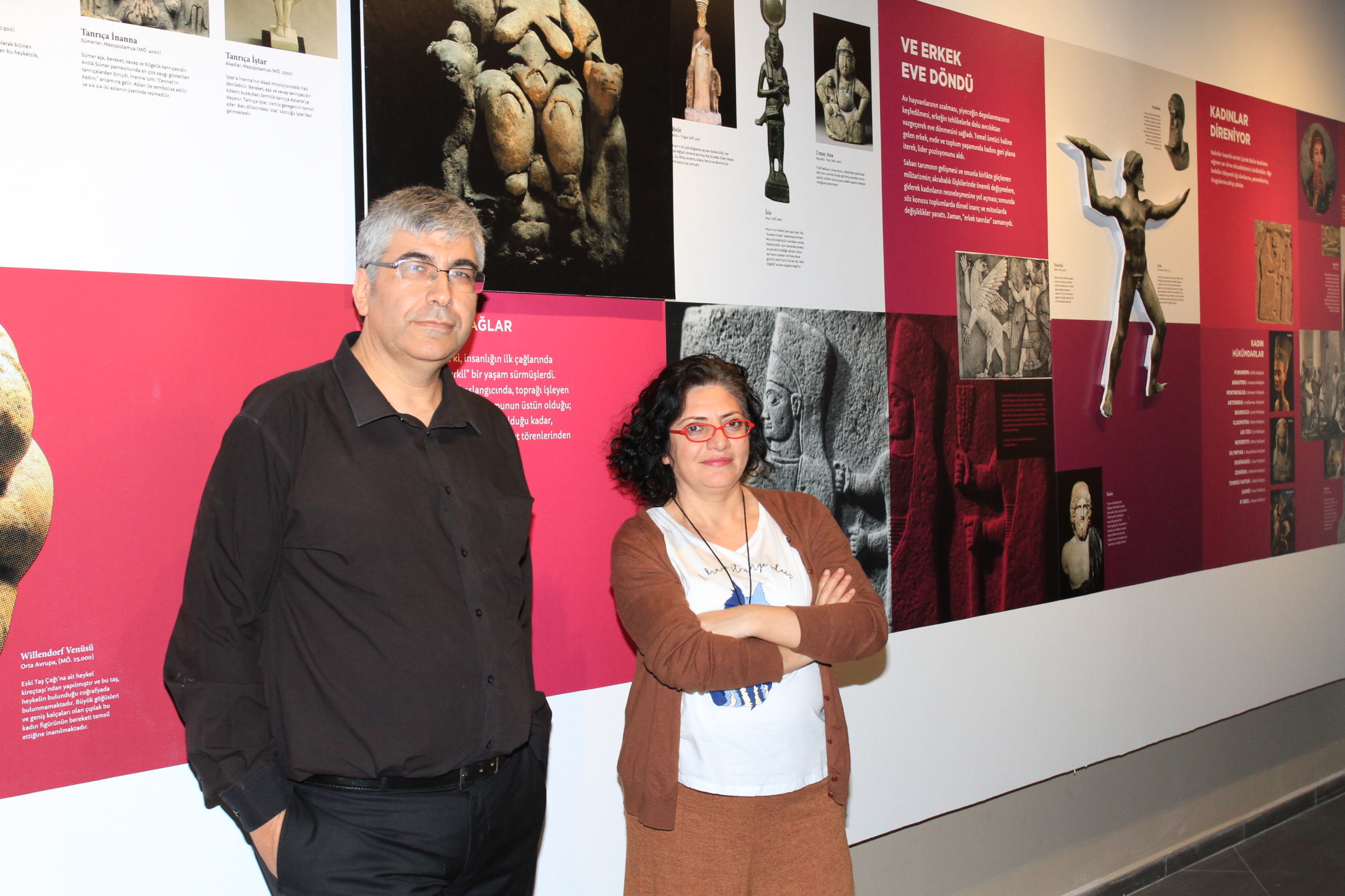 Mor Tarih sergisinin araştırması ve metinlerini yazan öğretim görevlisi Filiz Deniz ile küratör Ragıp İncesağır