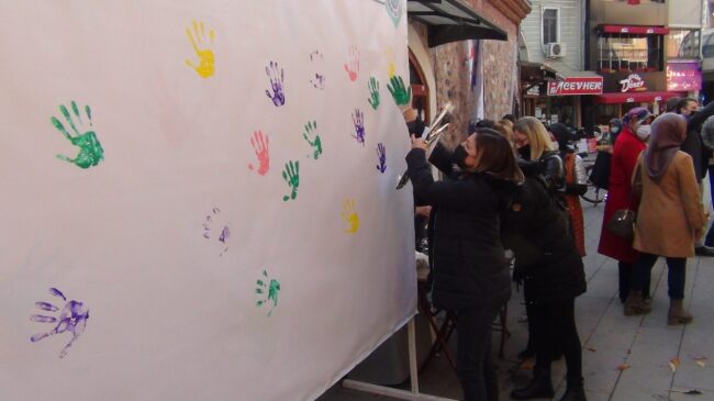 Kapalı Çarşı girişinde “Sessiz kalma suça ortak olma” sloganıyla faaliyet gerçekleştirildi.