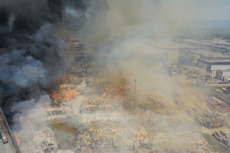 Söke Organize Sanayi Bölgesi’ndeki bir kağıt fabrikasının sıkıştırılmış kağıt depolama alanında 12 Temmuz akşamı çıkan yangında 45. saat geride kaldı.