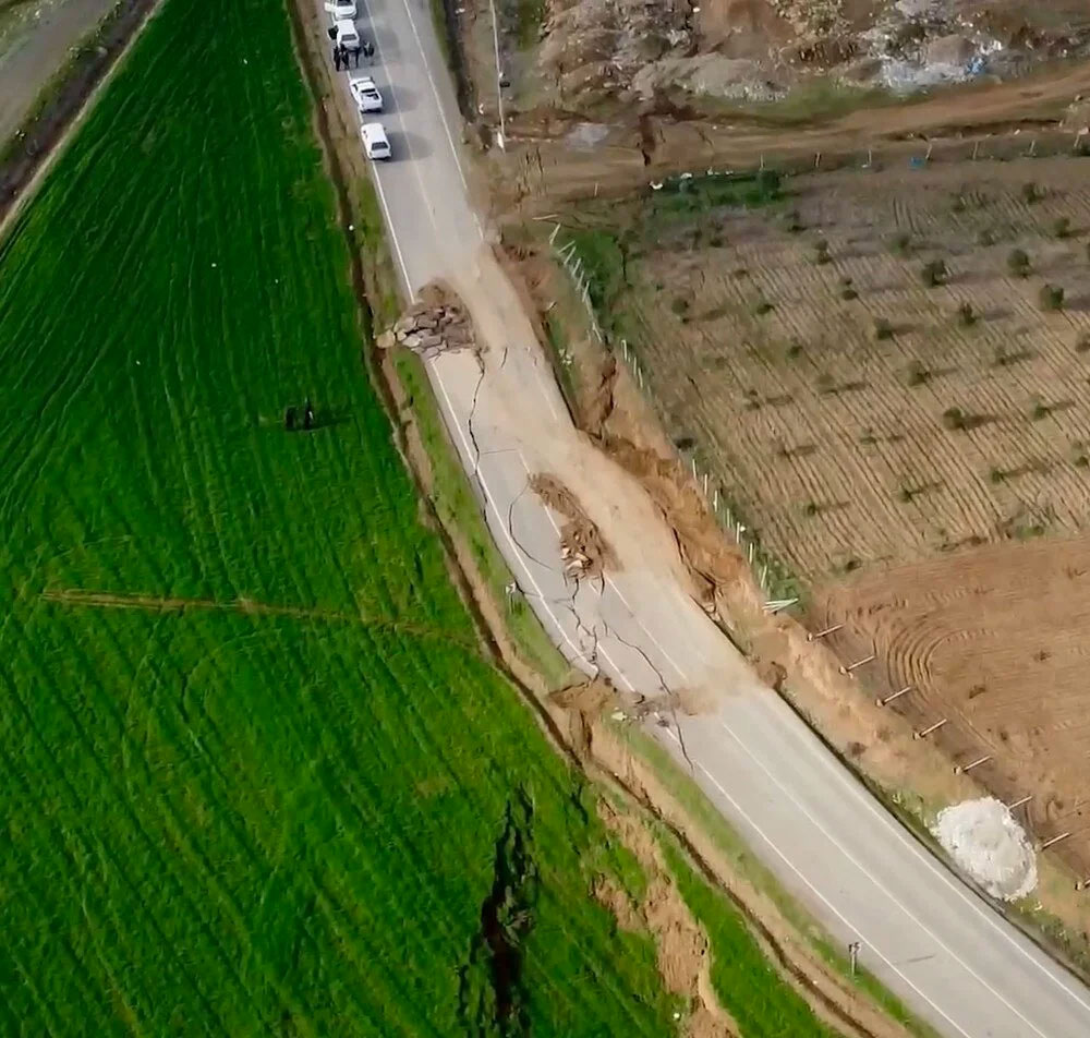 Kahramanmaraş’taki depremler sonrası Tevekkelli köyünde kilometrelerce uzanan fay hattındaki kırık böyle görüntülendi.