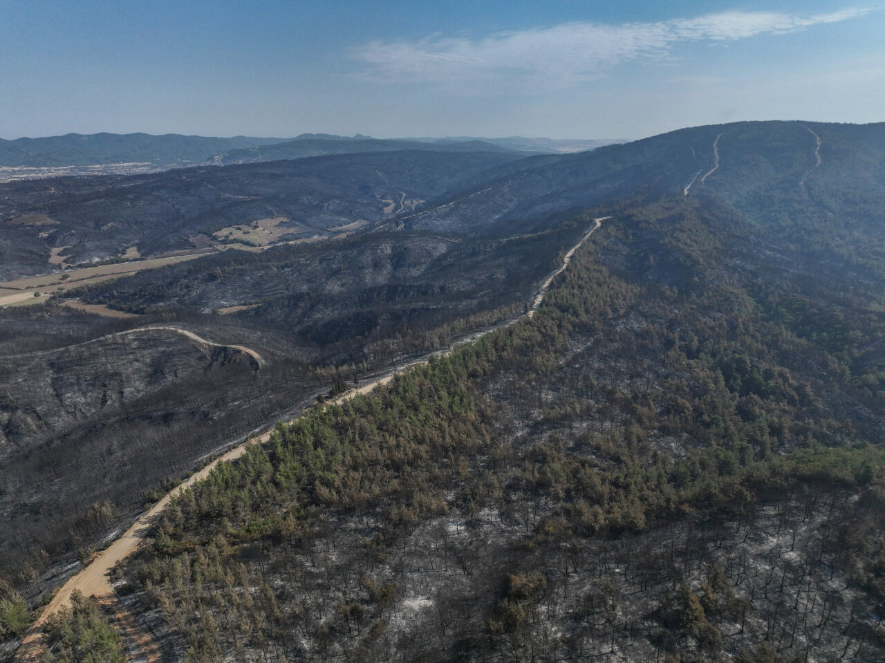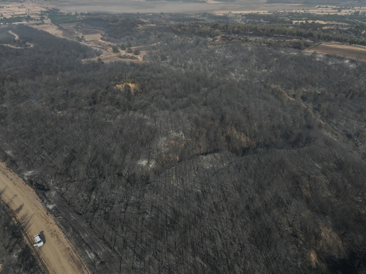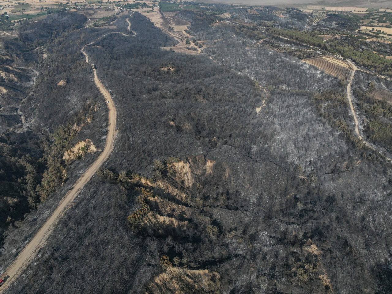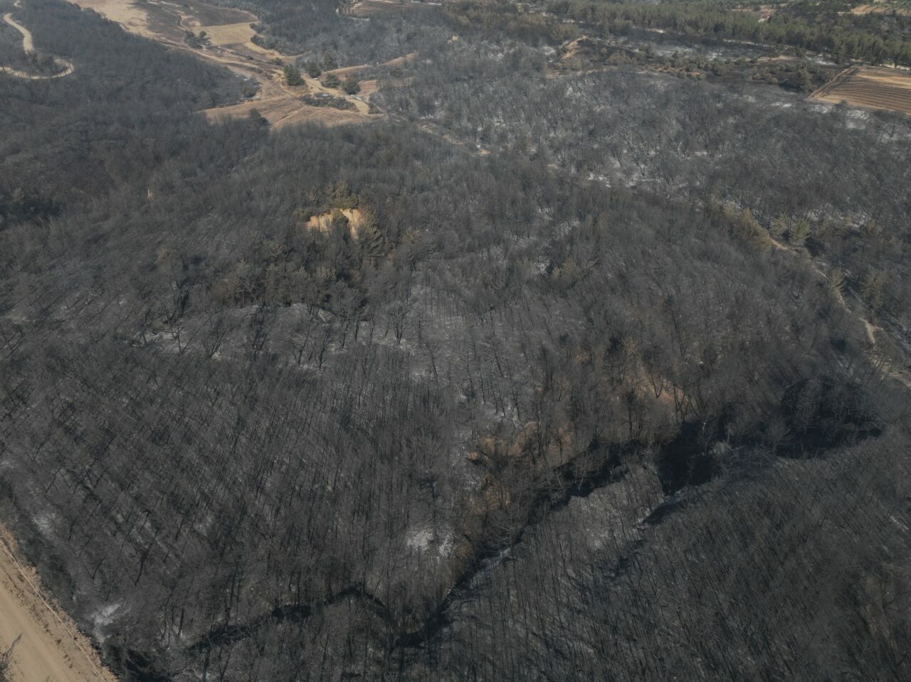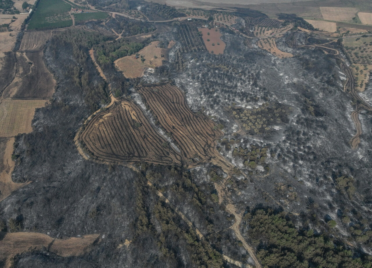 Tarım ve Orman Bakanı İbrahim Yumaklı’nın tamamen kontrol altına alındığını duyurduğu yangın alanında çalışmalarını sürdüren ekipler, yanan yerlerdeki inceleme ve tarama çalışmalarını gerçekleştiriyor. Yangında zarar gören alanlar dron ile görüntülendi.
