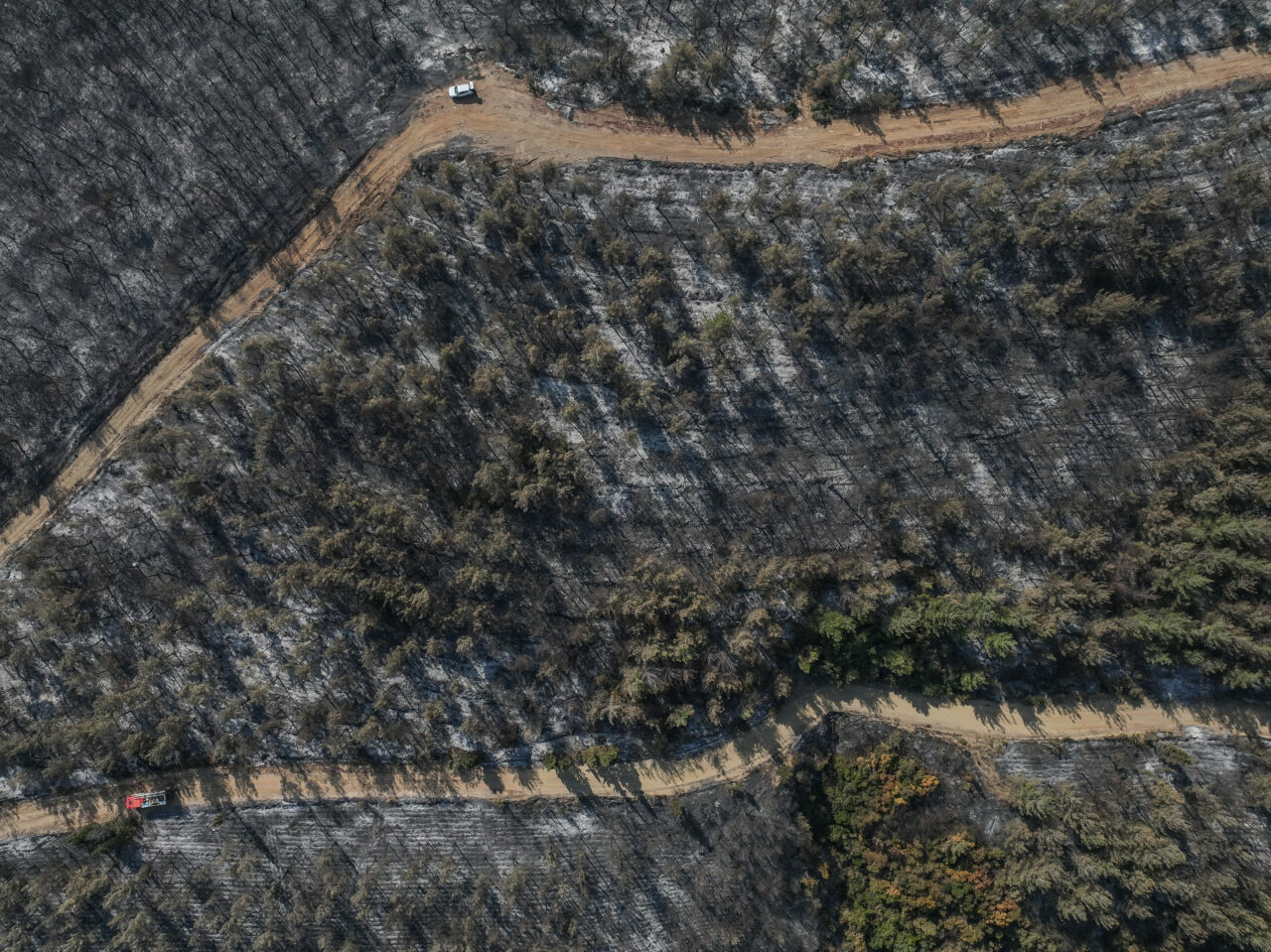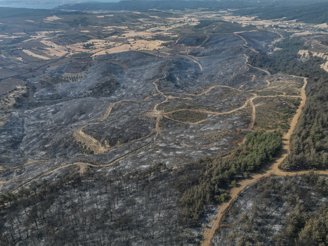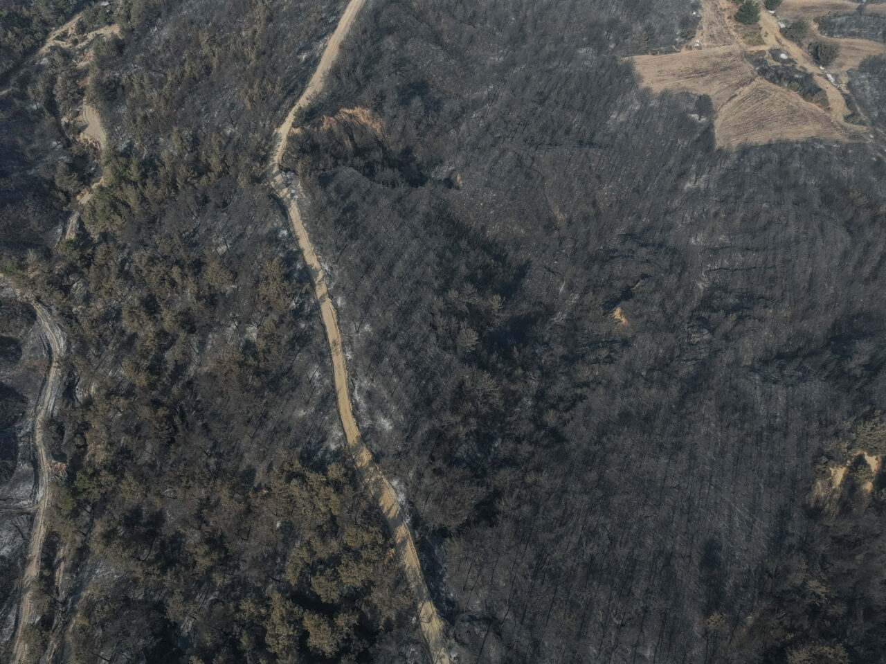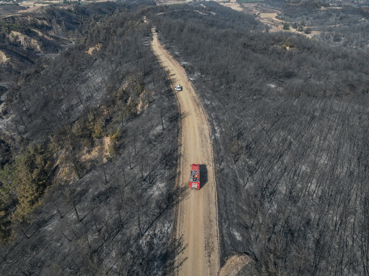 Tarım ve Orman Bakanı İbrahim Yumaklı’nın tamamen kontrol altına alındığını duyurduğu yangın alanında çalışmalarını sürdüren ekipler, yanan yerlerdeki inceleme ve tarama çalışmalarını gerçekleştiriyor. Yangında zarar gören alanlar dron ile görüntülendi.